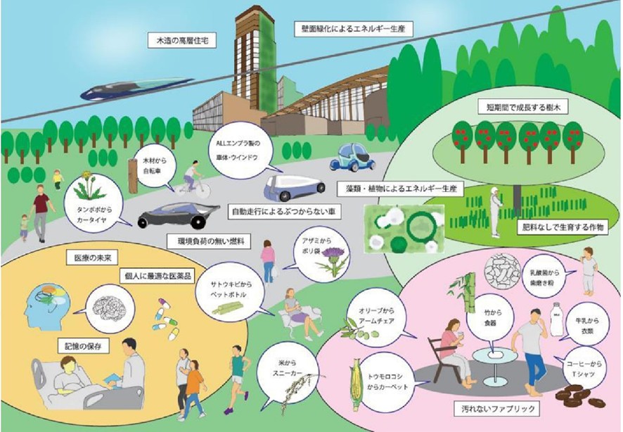 地球温暖化による気候変動や、世界的な人口増加による食糧・エネルギーの枯渇といった課題に対する有望な対策として期待され、各国政府や国際機関が推進している。日本でもゴミからエタノールを作る、藻から燃料を作る、などといった研究開発が進んでいる。